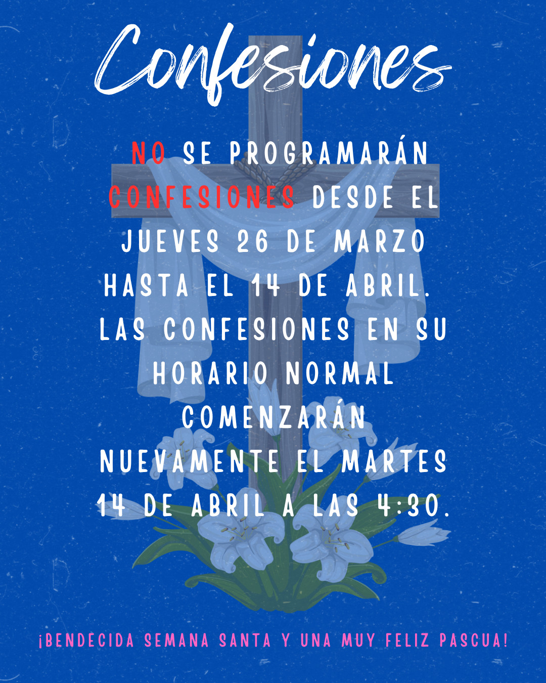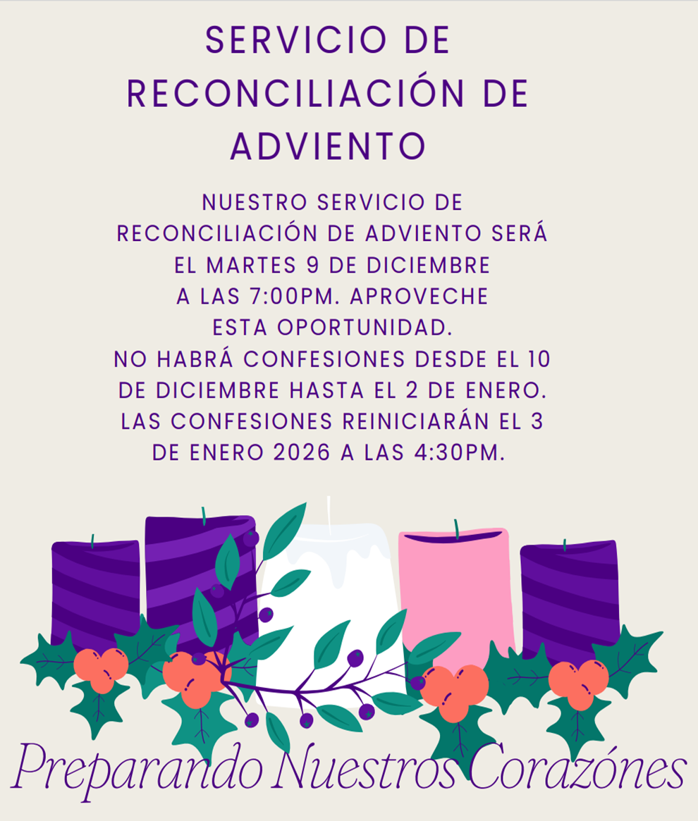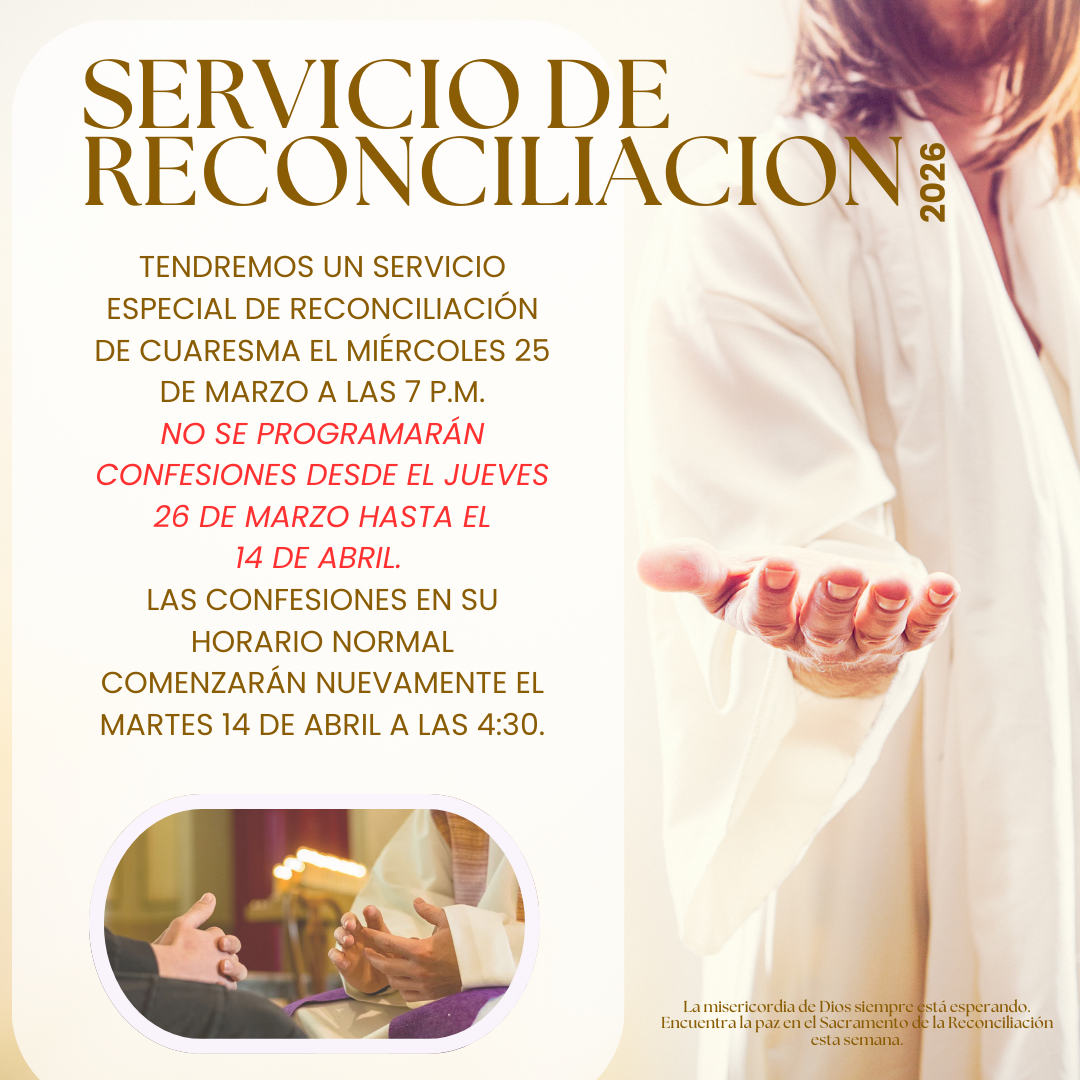 - 6 pm: Liturgia de la Palabra con Servicio de Comunión